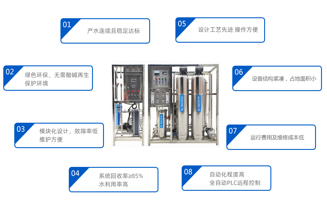 1. 連續(xù)產(chǎn)出超純水,出水水質(zhì)具有最佳的穩(wěn)定度,以高產(chǎn)率產(chǎn)生超純水(產(chǎn)率可以高達95%)