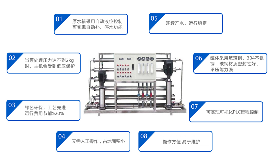 1. 雙級反滲透設(shè)備采用全自動控制方式,可減少人為誤操作對設(shè)備帶的影響